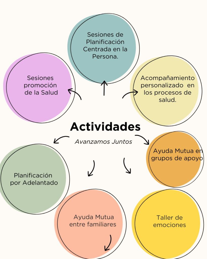 Con el fin de desarrollar acciones y espacios de encuentro que promuevan la calidad de vida y el cuidado de la salud de las personas con discapacidad intelectual con patologías crónicas, así como las de sus familias y otras personas de su entorno próximo, el programa “Avanzamos juntos” propone una serie de actividades que consolidan el compromiso de la Fundación con el bienestar y la inclusión de las personas con discapacidad más afectadas.