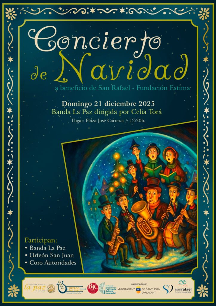 Organizado por el Ayuntamiento de Sant Joan y gracias a la Sociedad Musical La Paz, te ofrecemos este concierto a beneficio de San Rafael – Fundación Estima.